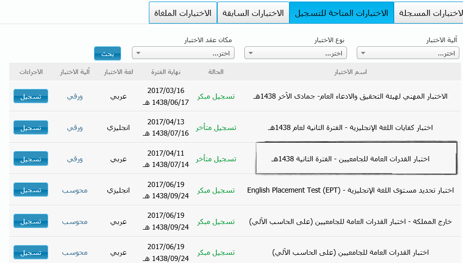 أنا نفس الشي صار معي في جدة… فحجزت في مكة واختبرت… إذا إنك في الغربية شوف مكة,جدة, الطايف,المدينة …المكان الأقرب لك … إذا في الشرقية … شوف الأحساء …